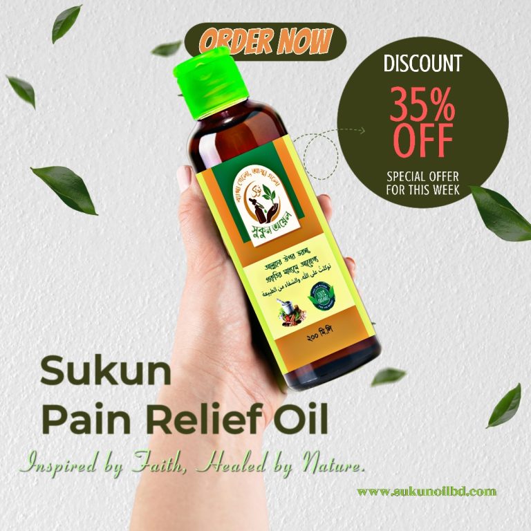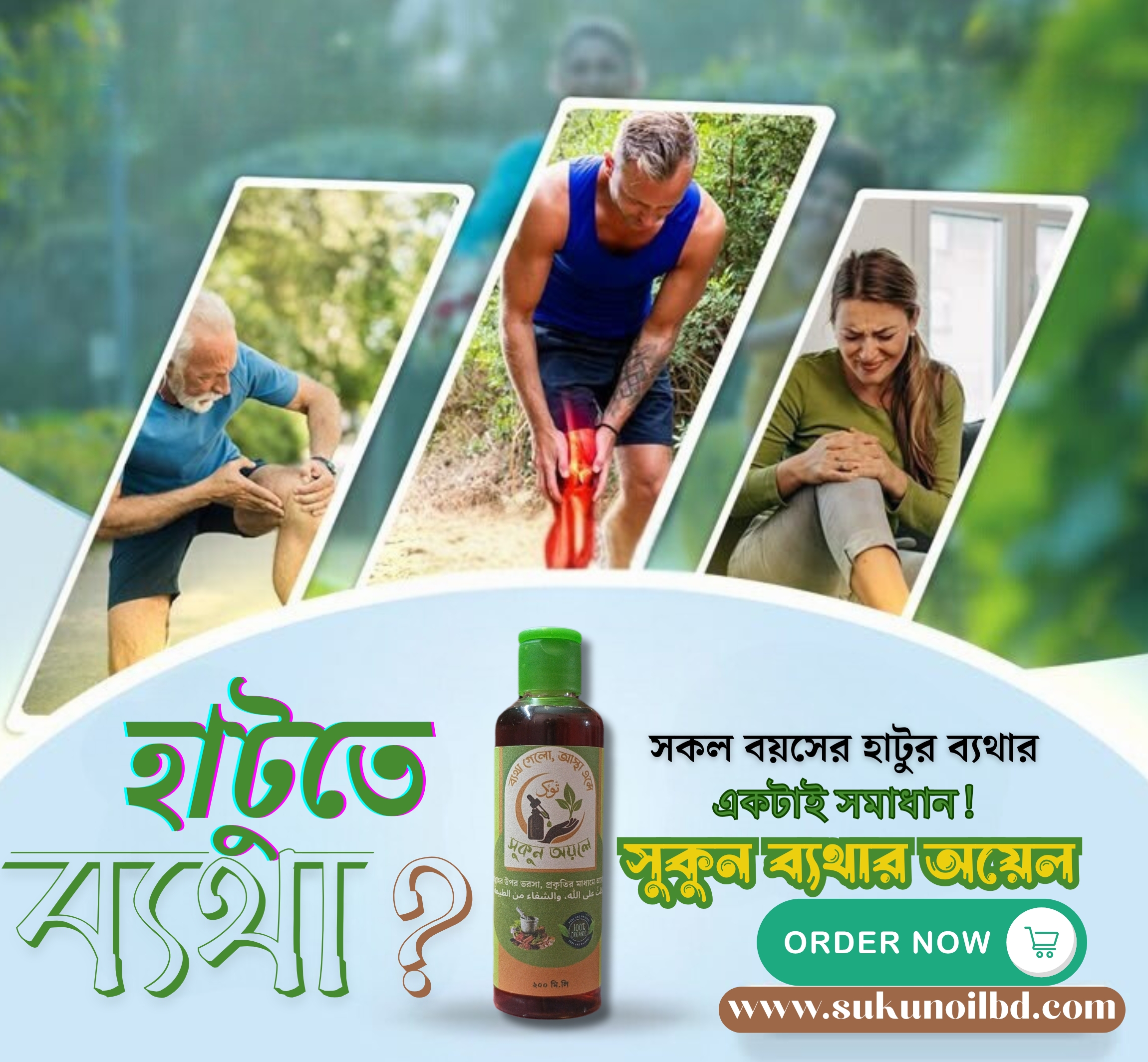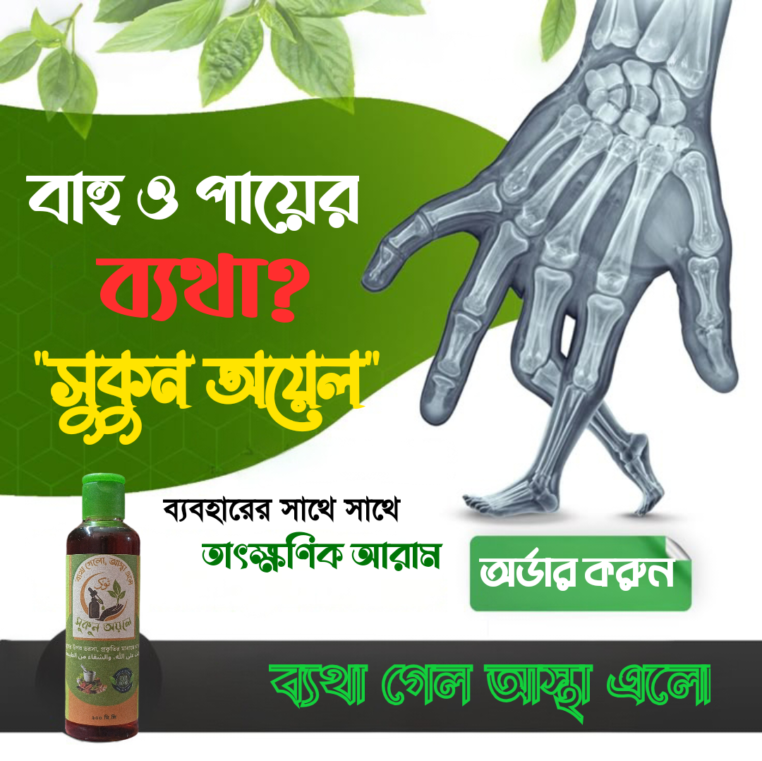 শতভাগ প্রাকৃতিক ও নিরাপদ ভেষজ উপাদানে তৈরী আমাদের সুকুন ব্যথার অয়েল নিয়মিত ব্যবহারে আরাম মিলবে বাত, আর্থ্রাইটিস, হাঁটু, কোমর, ঘাড়সহ যেকোনো ব্যথায়—ফিরে পাবেন হারানো স্বস্তি, কর্মক্ষমতা আর এক আত্মবিশ্বাসে ভরপুর জীবন।